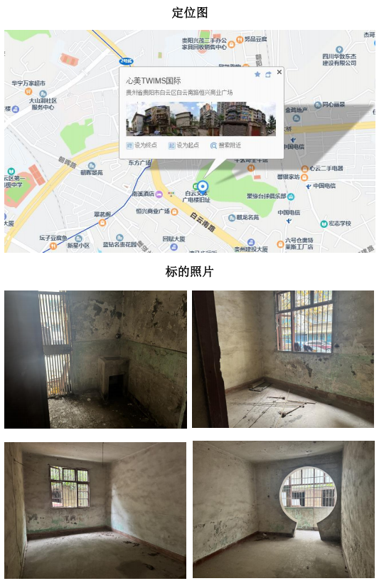 標(biāo)的坐落于白云區(qū)白云南路50號2單元1層1號,房屋總層數(shù)為4層,拍賣標(biāo)的所在層數(shù)為1層,產(chǎn)權(quán)證編號:黔(2025)白云區(qū)不動產(chǎn)權(quán)第0005918號,權(quán)利類型:國有建設(shè)用地使用權(quán)/房屋所有權(quán),權(quán)利性質(zhì):劃撥/自建房,用途:城鎮(zhèn)住宅用地/成套住宅,建筑面積:54.5㎡,房屋結(jié)構(gòu):混合結(jié)構(gòu)。
