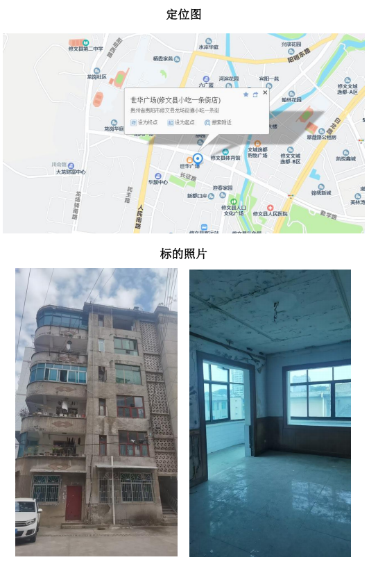 拍品編號7:貴陽市修文縣龍場鎮(zhèn)迎春壩(建行宿舍)A幢6層12號住宅用房