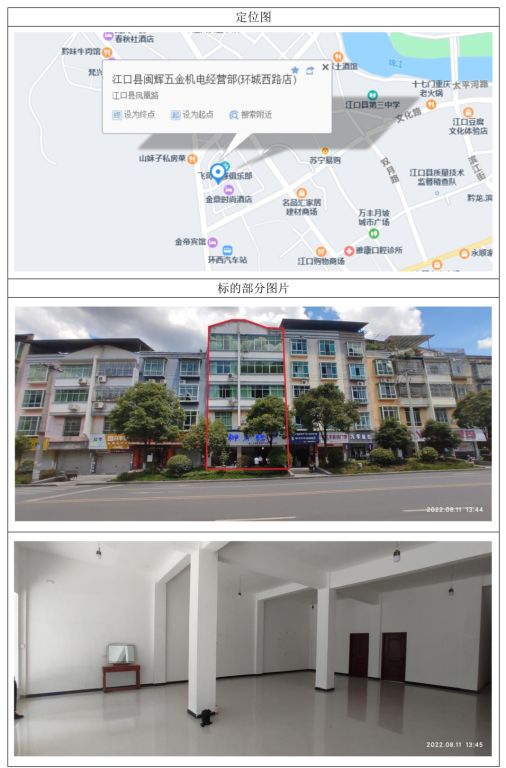 1、江口縣雙江鎮(zhèn)民族街商住房一棟,建筑面積:540㎡,起拍價:171.15萬元,競買保證金:20萬元;