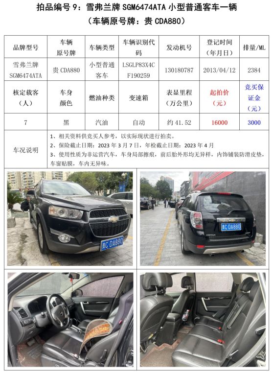 1、榮威牌、昊銳牌、別克牌、三菱牌、雪佛蘭牌等機(jī)動(dòng)車,共計(jì)13輛