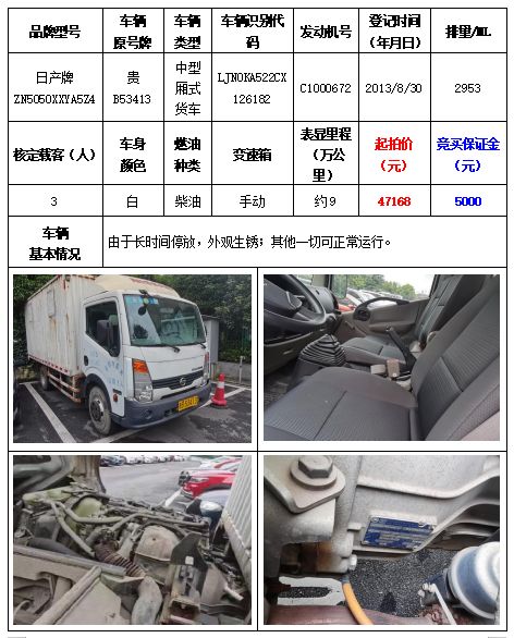 拍品編號5:日產(chǎn)牌ZN5050XXYA5Z4中型廂式貨車一輛