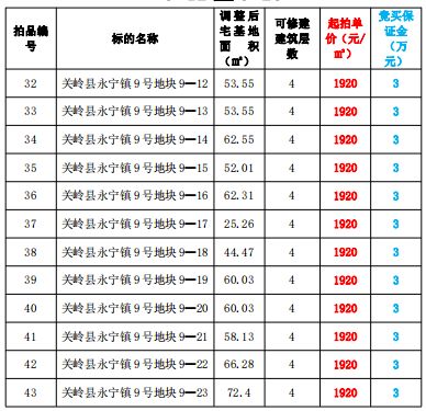 拍品32-43號(hào):關(guān)嶺縣永寧鎮(zhèn)9號(hào)地塊9-12至9-23