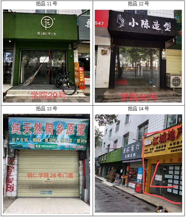 拍品9號(hào)至12號(hào)標(biāo)的:位于清水大道銅仁附中對(duì)面,面積均為:27.5㎡,租賃期均為3年(2023.5.1至2026.4.30),附近有車站、醫(yī)院、銀行、酒店、超市、學(xué)校等,交通便利,人流量大。