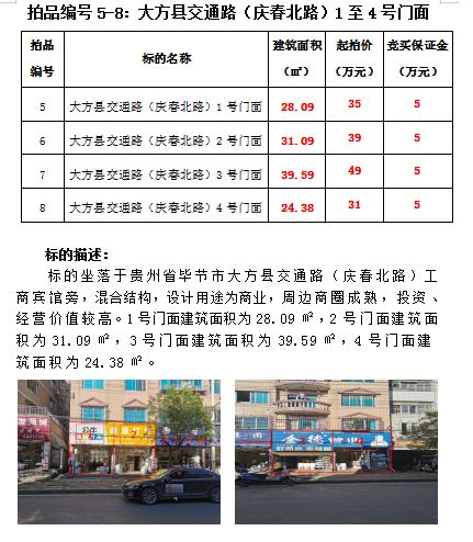 5、大方縣交通路(慶北春路)4間門面(建筑面積分別為:28.09、31.0939.59、24.38;