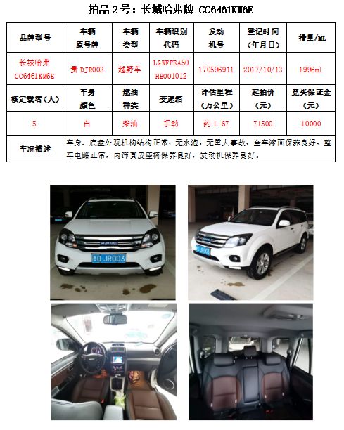 哈弗、路虎、柯斯達(dá)牌車輛拍賣信息