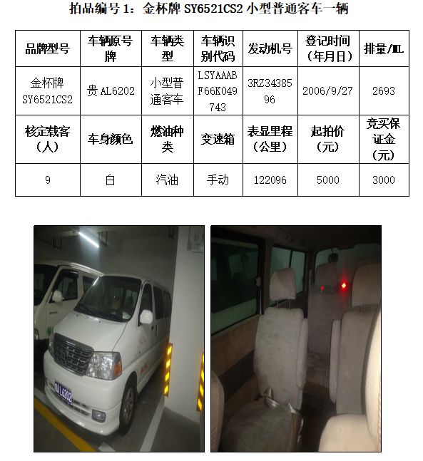 受委托,我公司定于2020年11月19日(星期四)下午14:30在貴陽市南明區(qū)中華南路20號(hào)新大陸廣場(chǎng)10樓D座公開拍賣:金杯、匯眾、帕薩特、邁騰牌共計(jì)4輛車。