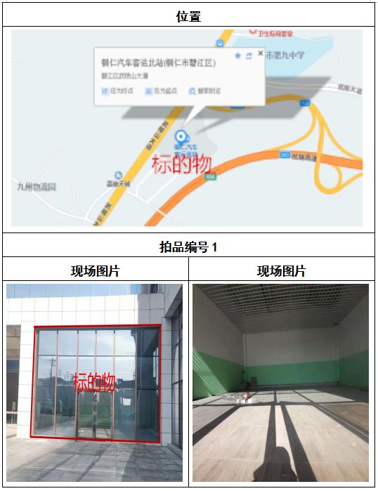 拍品1號-9號標(biāo)的位于銅仁碧江區(qū)川硐汽車客運(yùn)北站A區(qū)進(jìn)站口負(fù)一層1-9號的商業(yè)房地產(chǎn),位于銅仁市中心以北,銅仁汽車北站安置旁,建筑面積分別為:81㎡、121.5㎡、121.5㎡、121.5㎡、81㎡、121.5㎡、121.5㎡、121.5㎡、121.5㎡,租賃期5年,該標(biāo)的位置交通便利,人流量大。