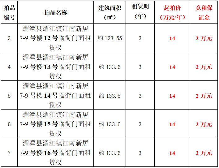 拍品3-7號:湄潭縣湄江鎮(zhèn)江南新居7-9號樓12號-16號臨街門面租賃權(quán)
