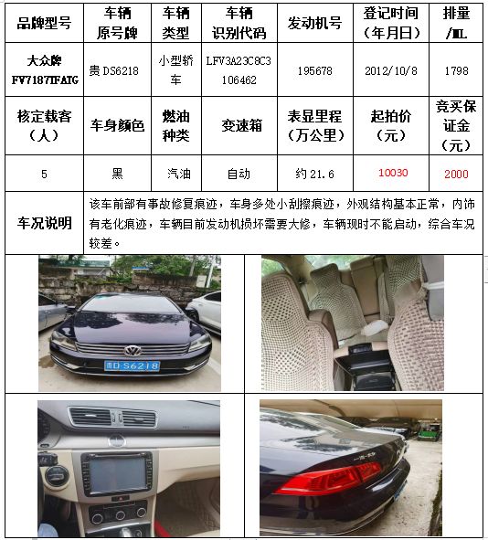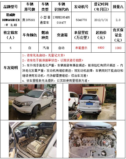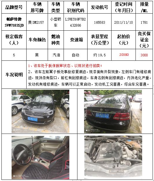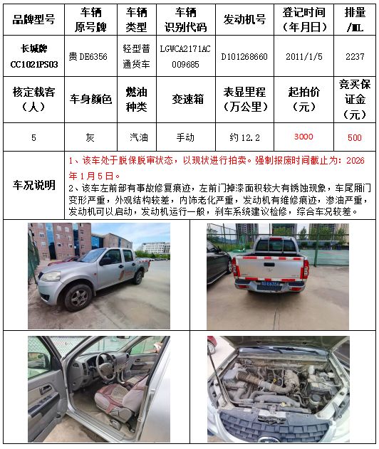 受委托,本公司定于2021年9月16日(星期四)下午14:30時(shí),在銅仁市碧江區(qū)川硐教育園區(qū)誠(chéng)信路銅仁市公共資源交易中心開(kāi)標(biāo)六室(拍賣大廳)公開(kāi)拍賣以下車輛:
