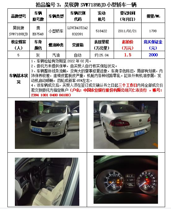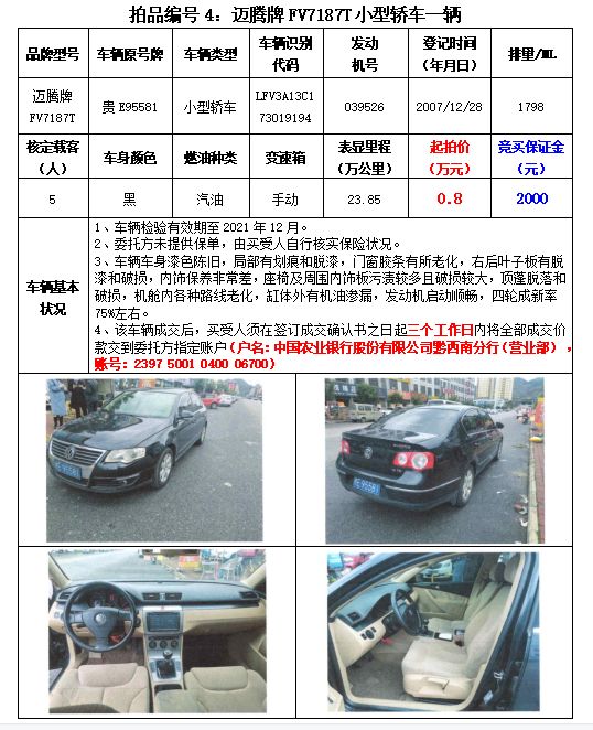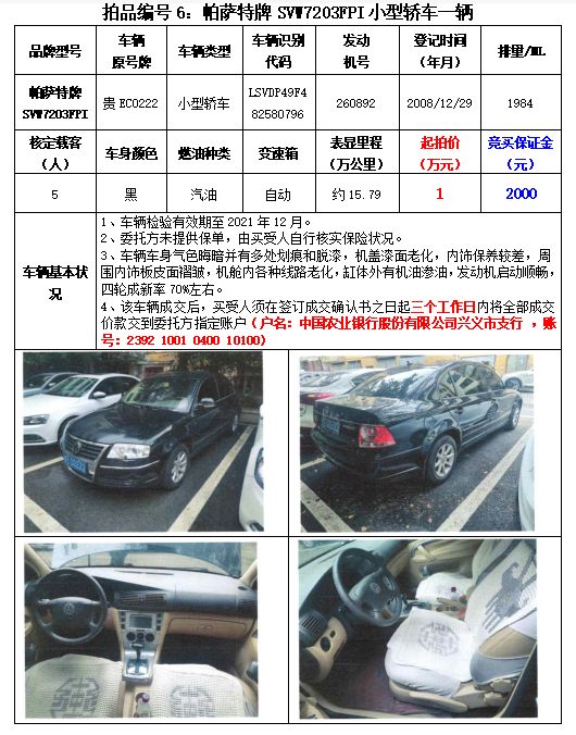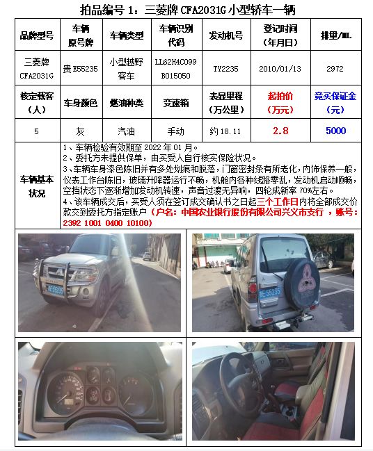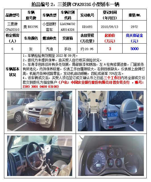 【已結(jié)束】黔西南7輛車輛拍賣公告