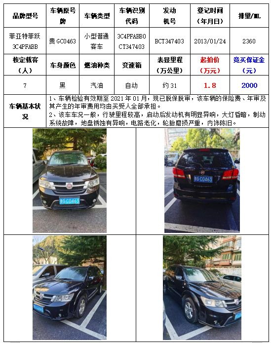 拍品編號5:菲亞特菲躍3C4PFABB小型普通客車一輛
