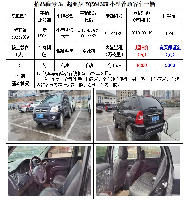 貴州春秋拍賣有限責(zé)任公司:機(jī)動(dòng)車拍賣公告