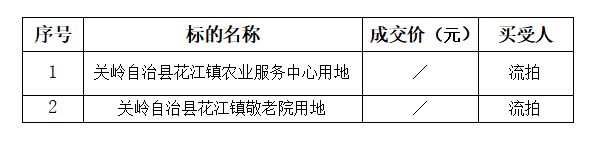 受委托,我公司于2022年4月22日(星期五)上午11:00在關(guān)嶺布依族苗族自治縣頂云天書酒店旁城投集團(tuán)二樓會議室面向社會公開拍賣關(guān)嶺自治縣花江鎮(zhèn)農(nóng)業(yè)服務(wù)中心用地和關(guān)嶺自治縣花江鎮(zhèn)敬老院用地,其結(jié)果如下: