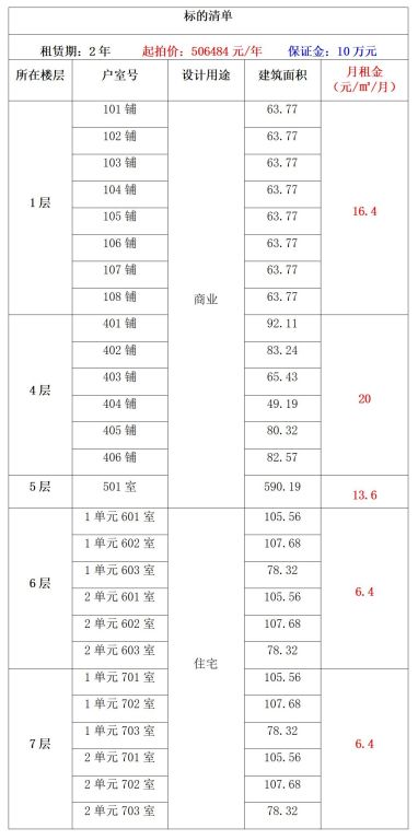 租賃期:2年 起拍價:506484元/年 競租保證金:10萬元