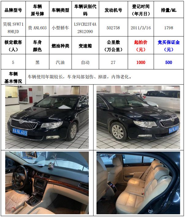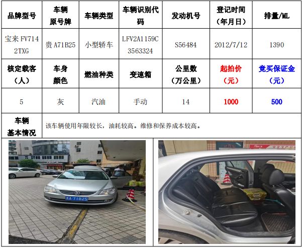 受委托,我公司定于2022年8月16日(星期二)下午14:30在貴州省貴陽市中華南路20號新大陸數(shù)碼廣場10樓D座會議室公開拍賣:寶來FV7142TXG、北京現(xiàn)代BH7143AY、廣州本田雅閣HG7203AB、昊銳SVW7189BJD小型轎車,共計4輛。