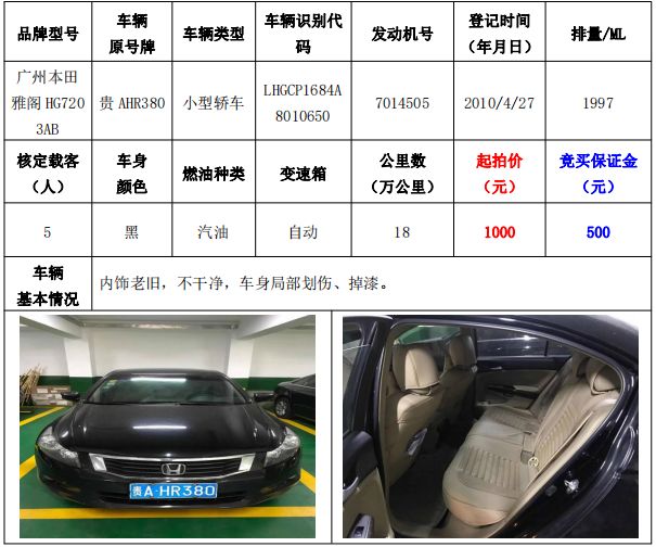拍品編號3:廣州本田雅閣HG7203AB小型轎車