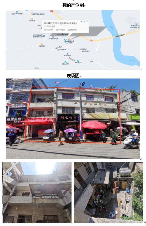 1、該標的位于大方縣百納鄉(xiāng)政府旁,建成于2003年,占地面積264.9㎡。共四層,分為前后兩棟。前棟:一層為門面2間,面積合計76.83,現為閑置狀態(tài);二、三層面積分別為116.7㎡;四層面積為56.05㎡;前棟面積共計366.28㎡。后棟半地下層在鄉(xiāng)政府院內,面積為38.9㎡;一、二層面積分別為137.43㎡;三層面積為95.73㎡;后棟面積共計409.48㎡。前后兩棟建筑面積共計為775.77㎡。