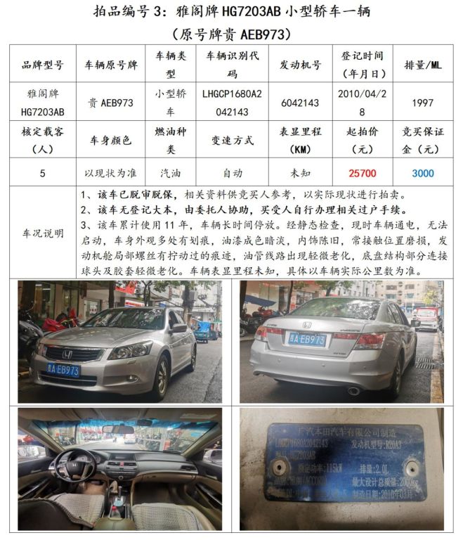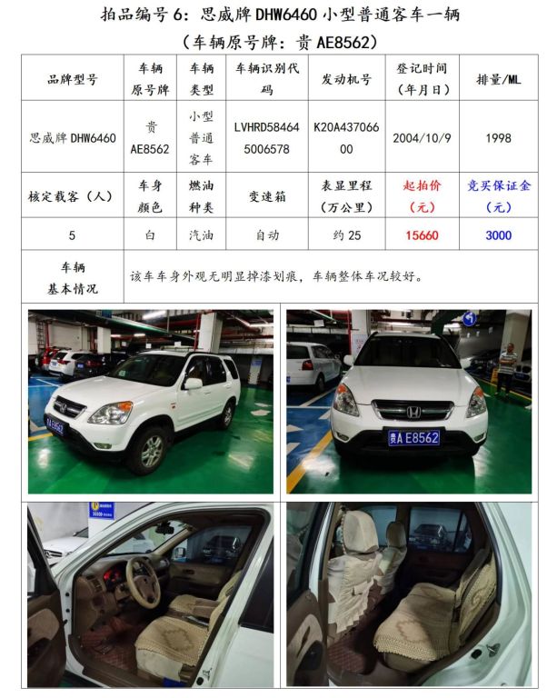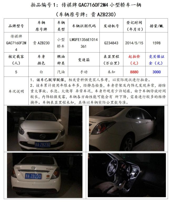 【已結(jié)束】貴陽市6輛機動車拍賣公告