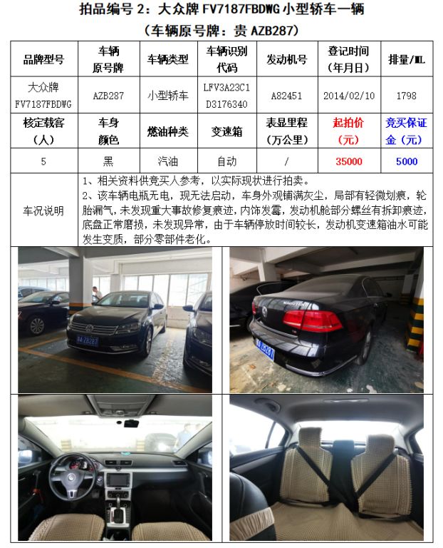大眾牌FV7166FAAGG小型轎車、大眾牌FV7187FBDWG小型轎車,共計三輛。