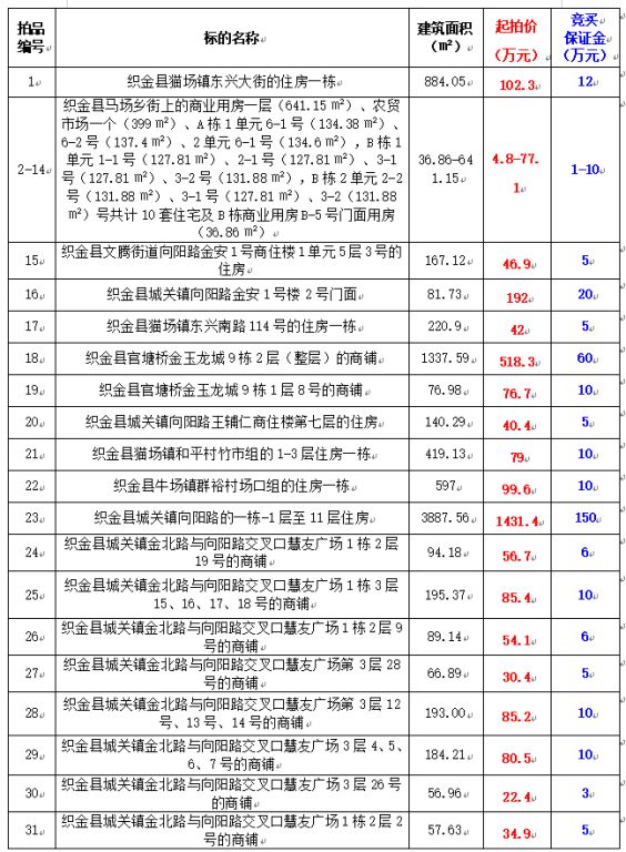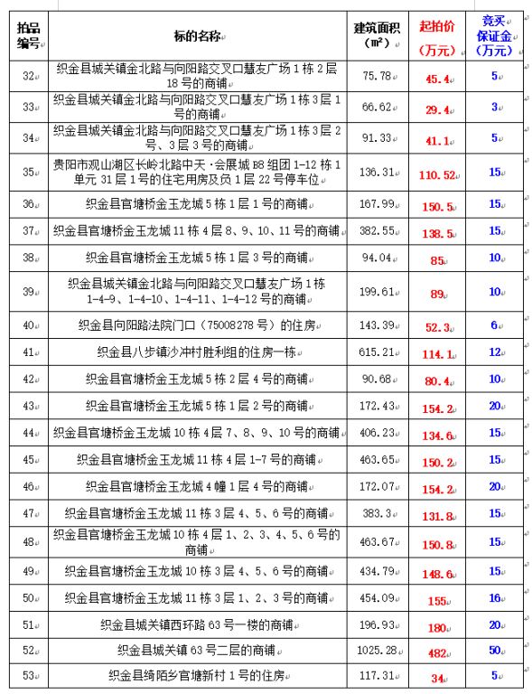 【已結(jié)束】畢節(jié)市織金縣商業(yè)、住宅不動產(chǎn)拍賣公告