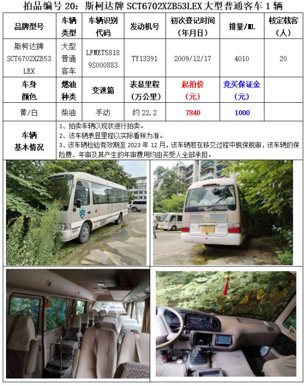 受委托,我公司定于2023年8月25日(星期四)下午14:30時(shí),在貴州省公共資源交易中心開(kāi)標(biāo)室多功能廳(貴陽(yáng)市南明區(qū)遵義路)公開(kāi)拍賣以下標(biāo)的: