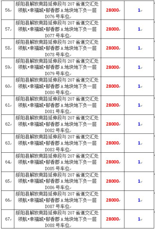 6、綏陽縣解放南路延伸段與207省道交匯處領(lǐng)航?幸福城?郁香郡A地塊地下負(fù)一層170個車位,起拍價:28000元/個,競買保證金:1萬元/個。