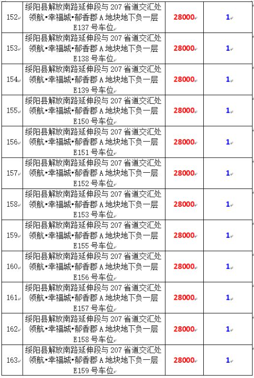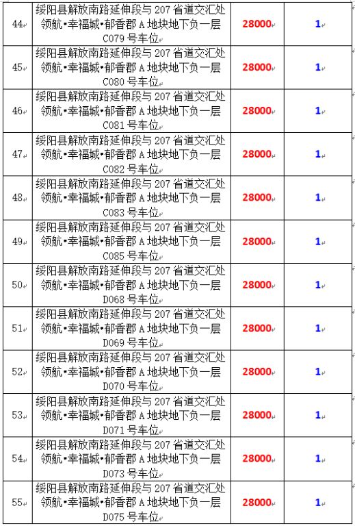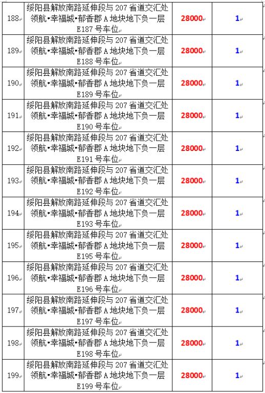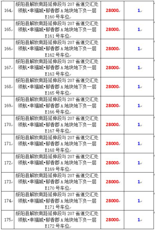1、標(biāo)的坐落于綏陽縣解放南路延伸段與207省道交匯處領(lǐng)航?幸福城?郁香郡A地塊地下負(fù)一層。標(biāo)的總數(shù)為170個車位,水電設(shè)施齊全。