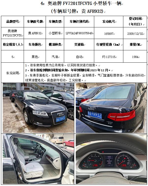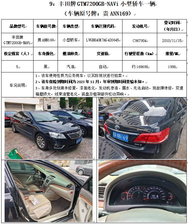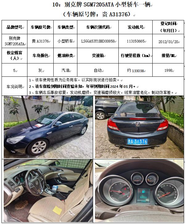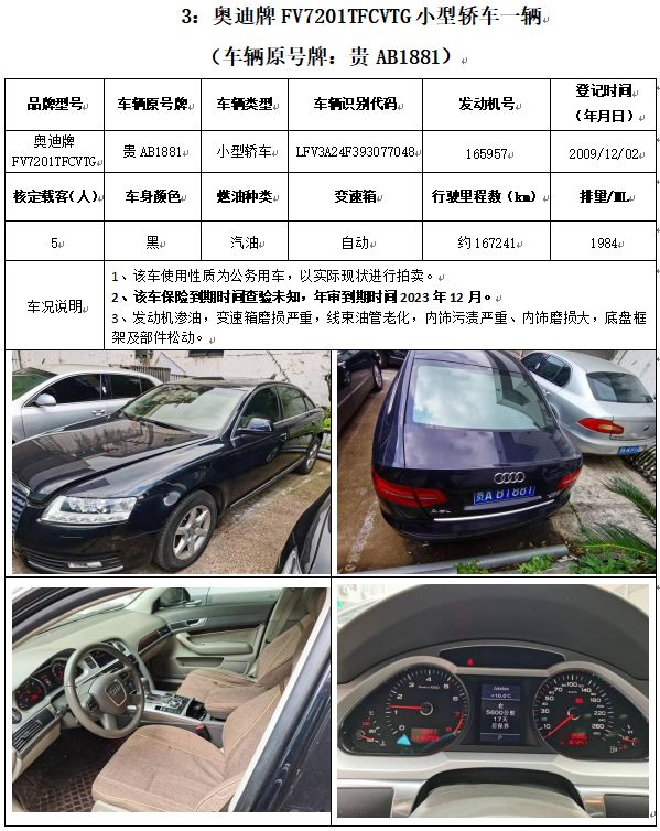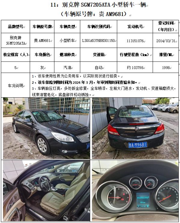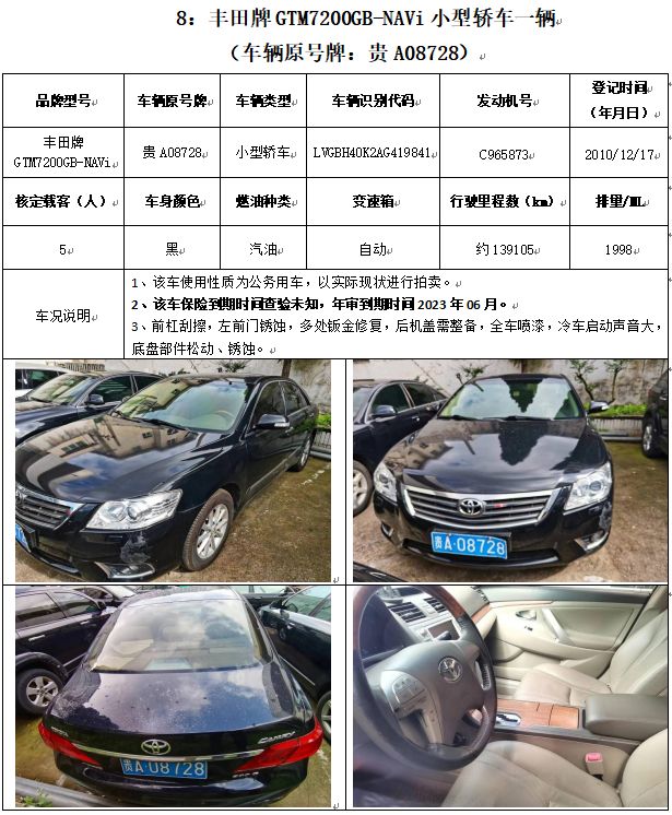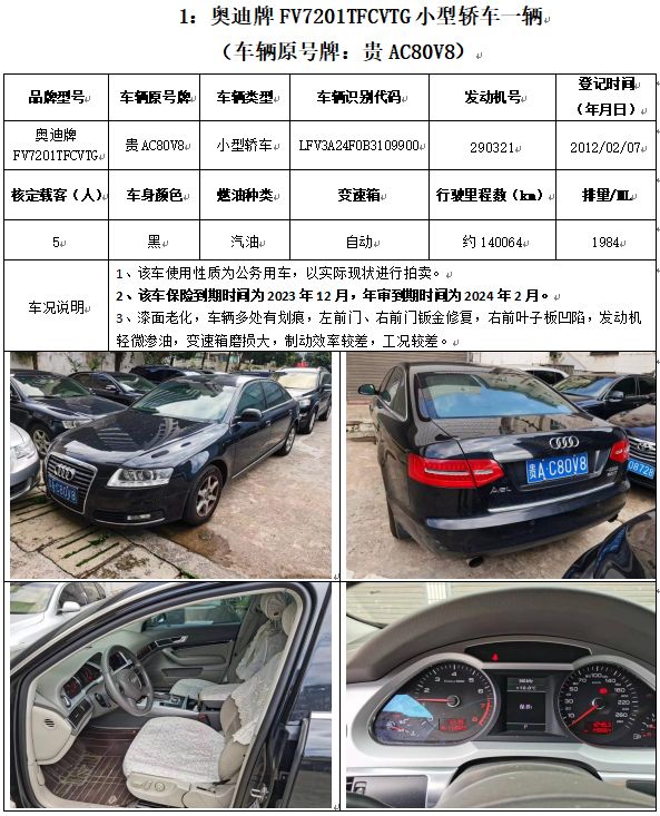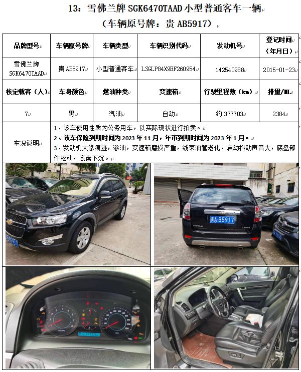 受委托,我公司定于2023年12月19日(星期二)下午15:00在貴州省貴陽市中華南路20號新大陸數(shù)碼廣場10樓D座會議室公開拍賣以下標(biāo)的: