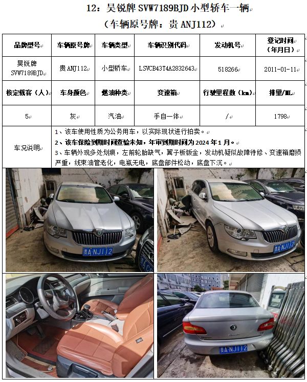 奧迪牌、菲亞特菲躍牌、豐田牌、別克牌、昊銳牌、雪佛蘭牌、??怂古频溶囕v,共計(jì)14輛(整體拍賣)。