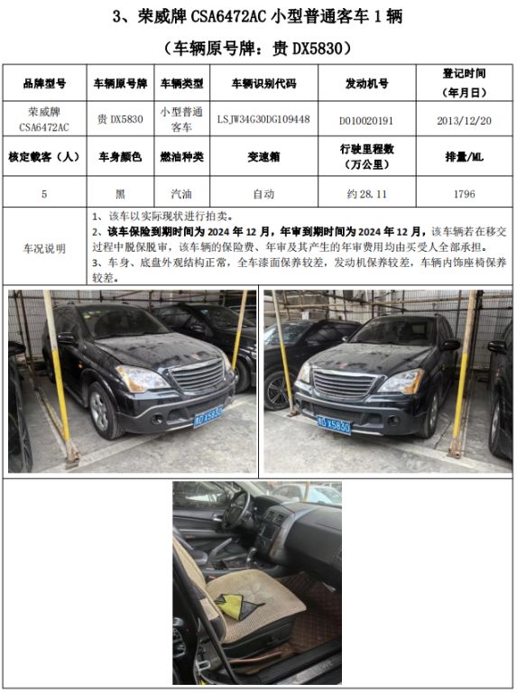 一、2024年5月21日(星期二)下午14:30在中拍平臺對梅賽德斯-奔馳牌、榮威牌車輛,共計3輛(整體拍賣),進(jìn)行網(wǎng)絡(luò)拍賣。
