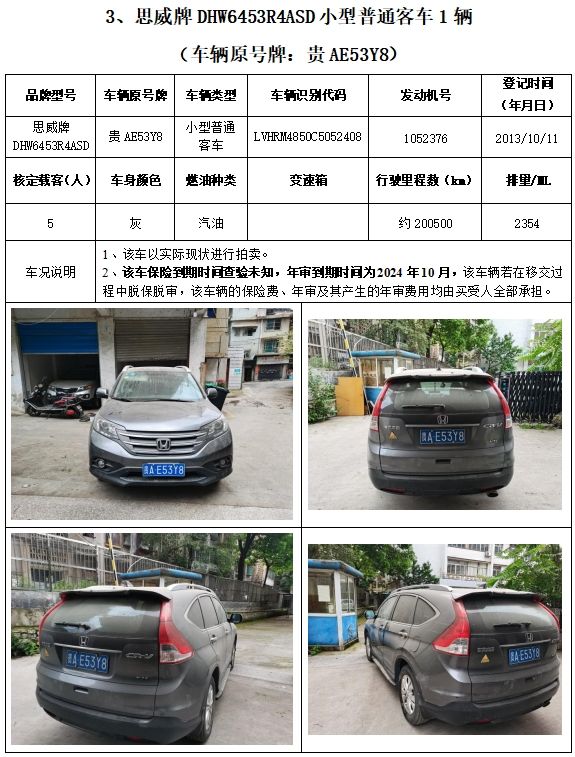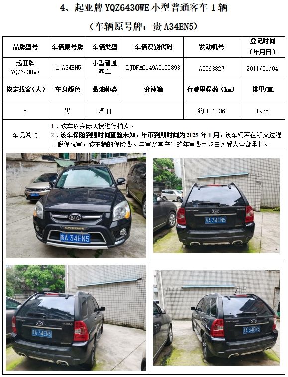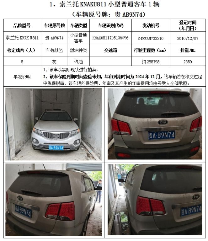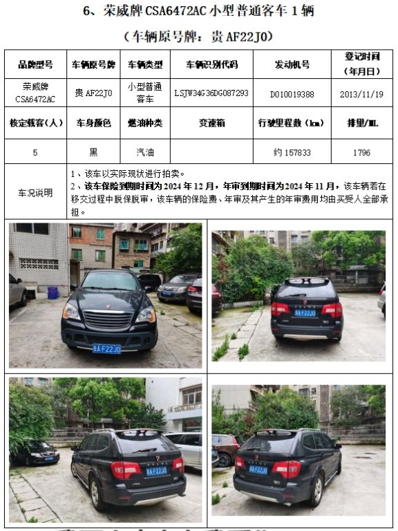 拍品編號2:榮威牌、別克牌、起亞牌、思威牌、長城牌、索蘭托牌車輛,共計6輛(整體拍賣)