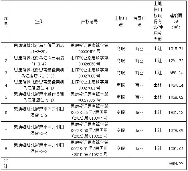 拍賣編號2:思唐鎮(zhèn)城北街思南最佳美洲烏江酒店商業(yè)用房,建筑面積:9421.94㎡;