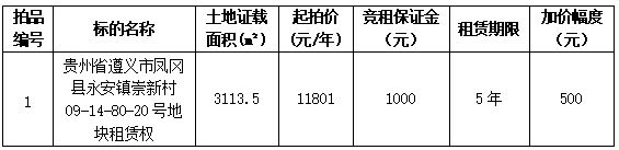 【07月23日】貴州省遵義市鳳岡縣永安鎮(zhèn)崇新村崇新糧站租賃權(quán)拍賣電子競(jìng)價(jià)公告