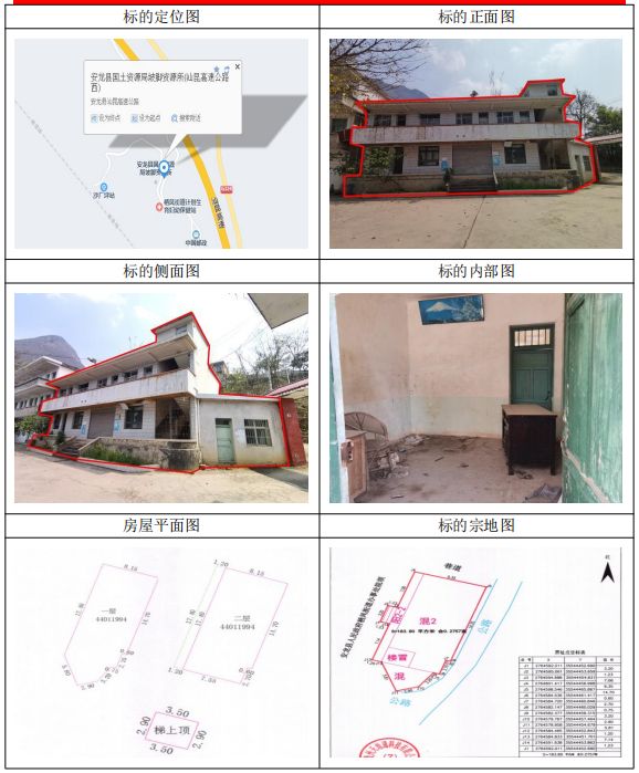 標(biāo)的坐落于安龍縣坡腳鄉(xiāng)政府院內(nèi),房屋為自建獨(dú)幢房屋,總層數(shù)為2層,證載建筑面積:318.4㎡,實(shí)測(cè)建筑面積:319.76㎡,房屋產(chǎn)權(quán)證號(hào):安房權(quán)證坡腳鄉(xiāng)字第00003456號(hào),設(shè)計(jì)用途為辦公住宅,混合結(jié)構(gòu);土地使用權(quán)證號(hào):安國(guó)用(2014)第21號(hào),證載土地使用權(quán)面積:190.81㎡,實(shí)測(cè)土地使用權(quán)面積:183.8㎡,地類(lèi)(用途):金融用地,使用權(quán)類(lèi)型為出讓?zhuān)K止日期為2054年11月22日止。