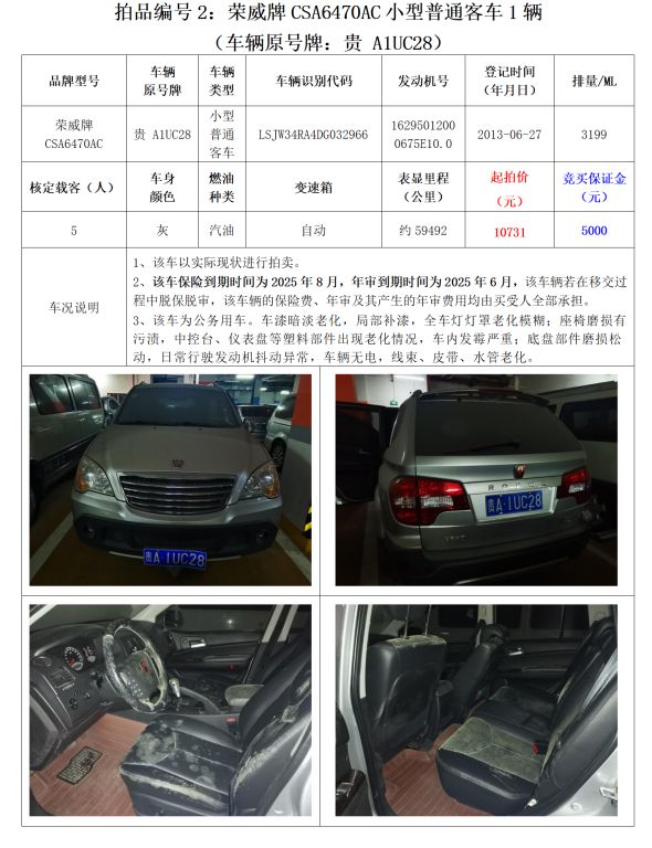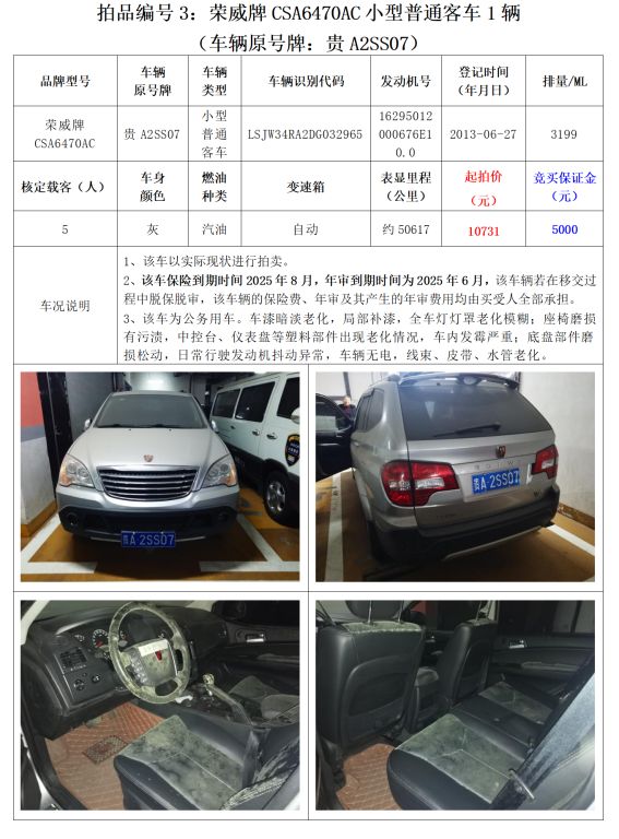 2、榮威牌CSA6470AC小型普通客車(chē)2輛;
