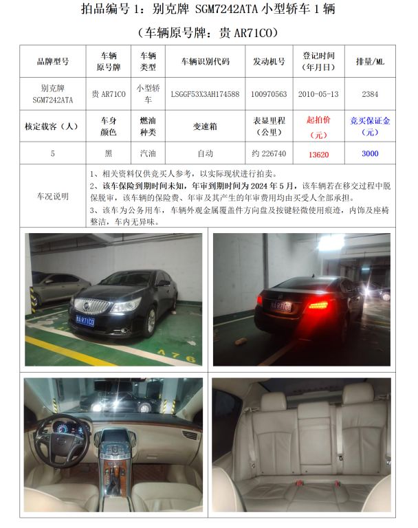1、別克牌SGM7242ATA小型轎車(chē)1輛;