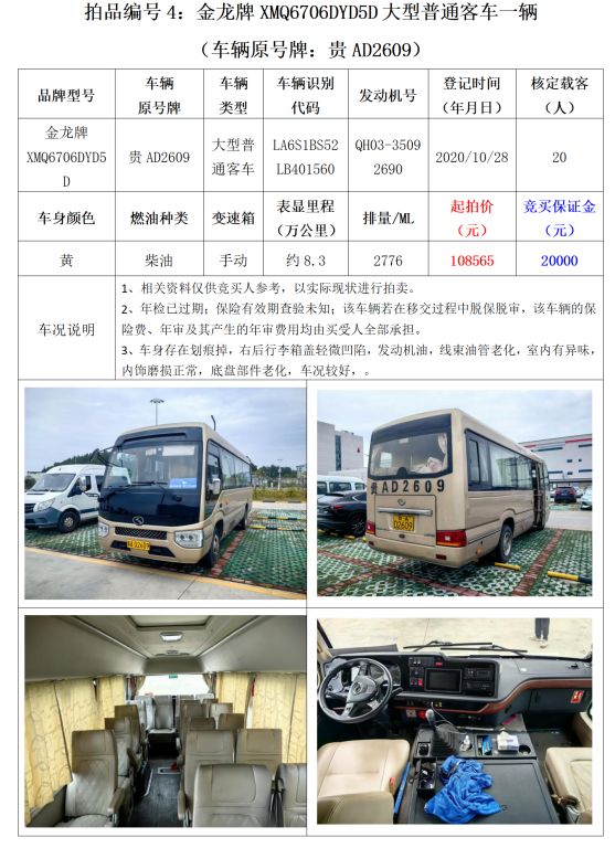3、金龍牌XMQ6706DYD5D大型普通客車(chē)1輛。
