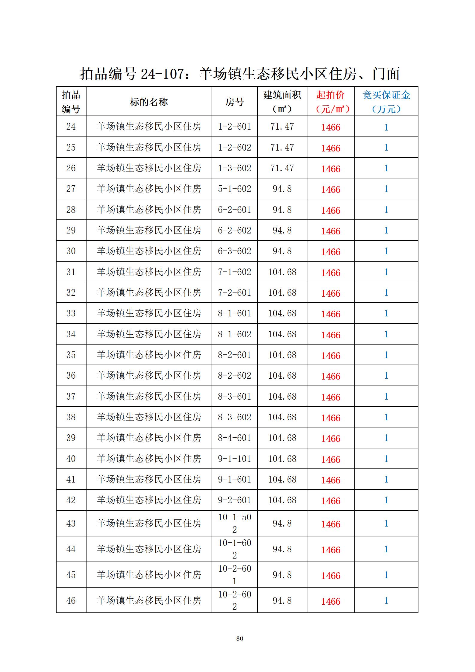 拍品編號24-107:羊場鎮(zhèn)生態(tài)移民小區(qū)住房、門面