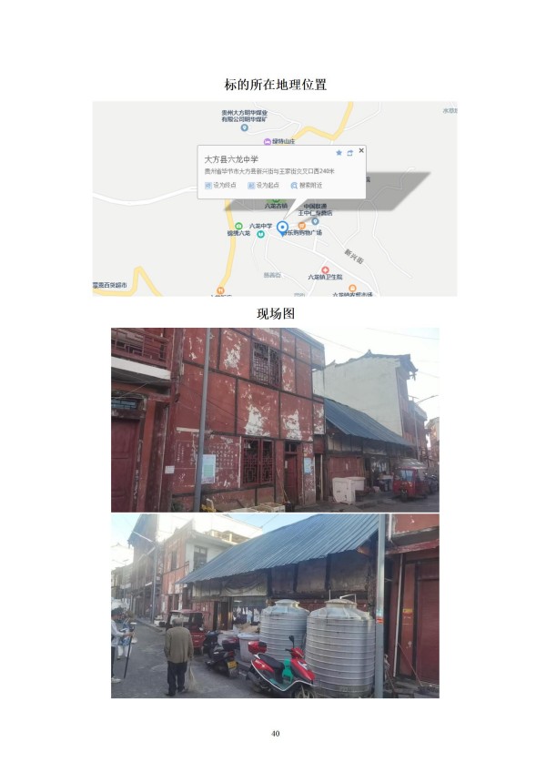 標的位于大海壩。建筑面積:1216.01㎡,土地面積:579.92㎡,建筑結(jié)構(gòu)為混合結(jié)構(gòu),總層數(shù)為3層,土地性質(zhì)為劃撥。