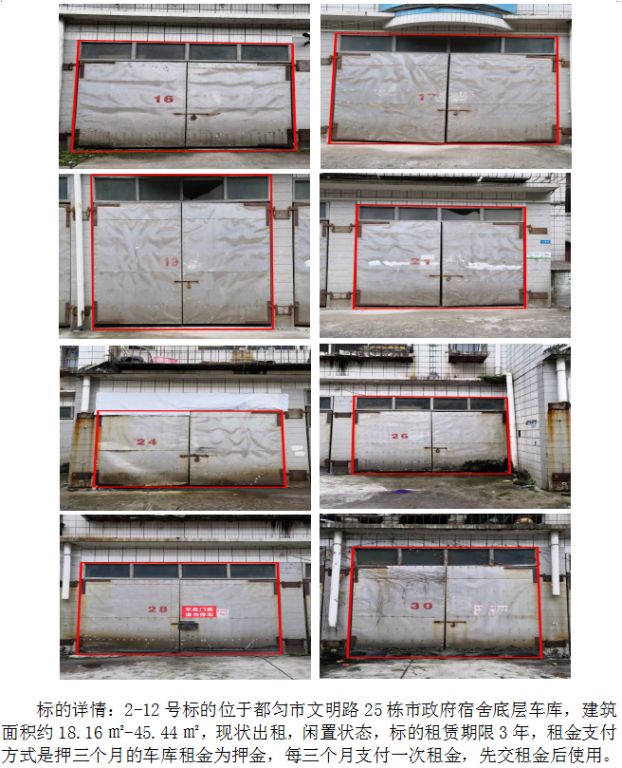 2、都勻市文明路25棟市政府宿舍底層車庫(kù)11間3年租賃權(quán)(面積約18.16㎡-45.44㎡);